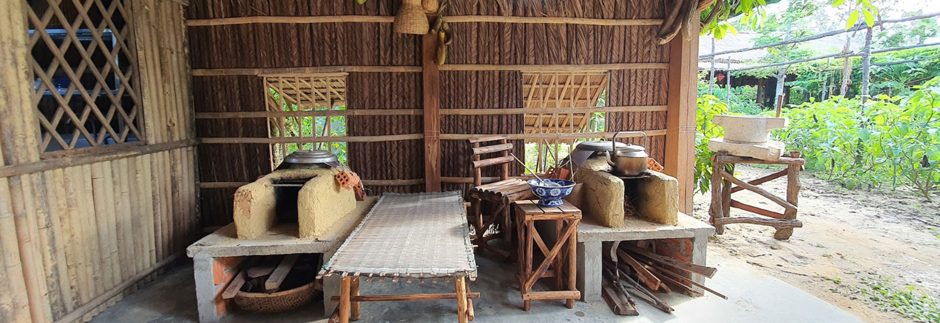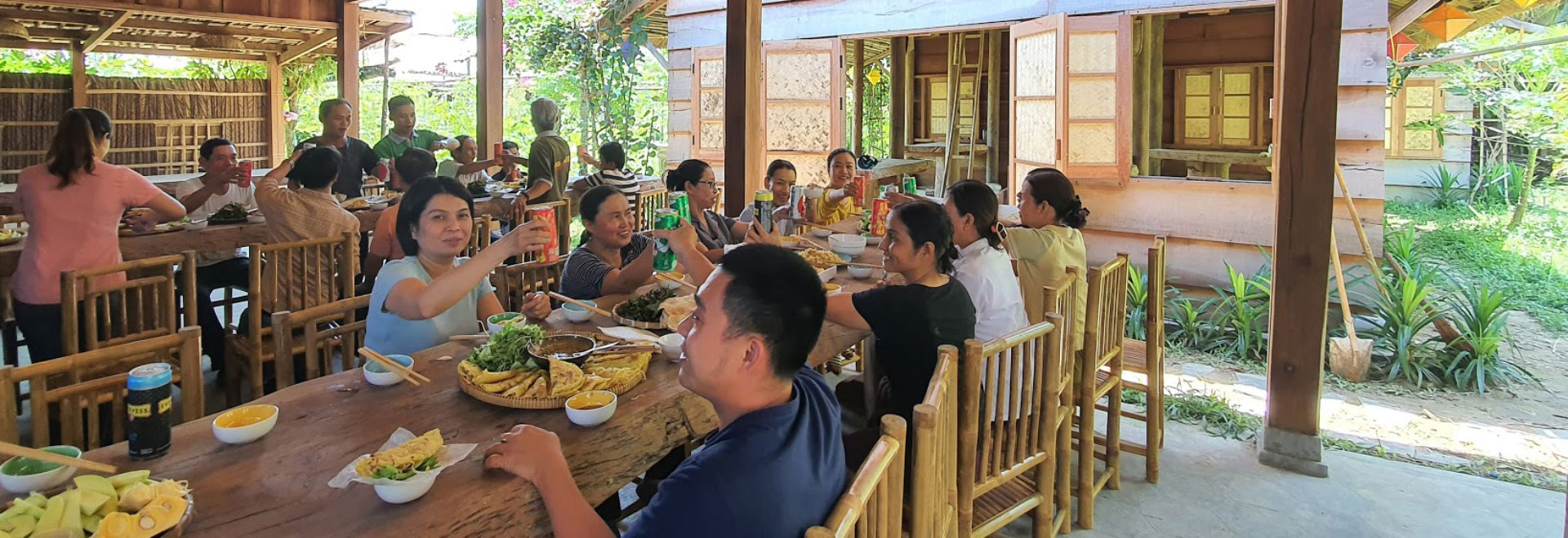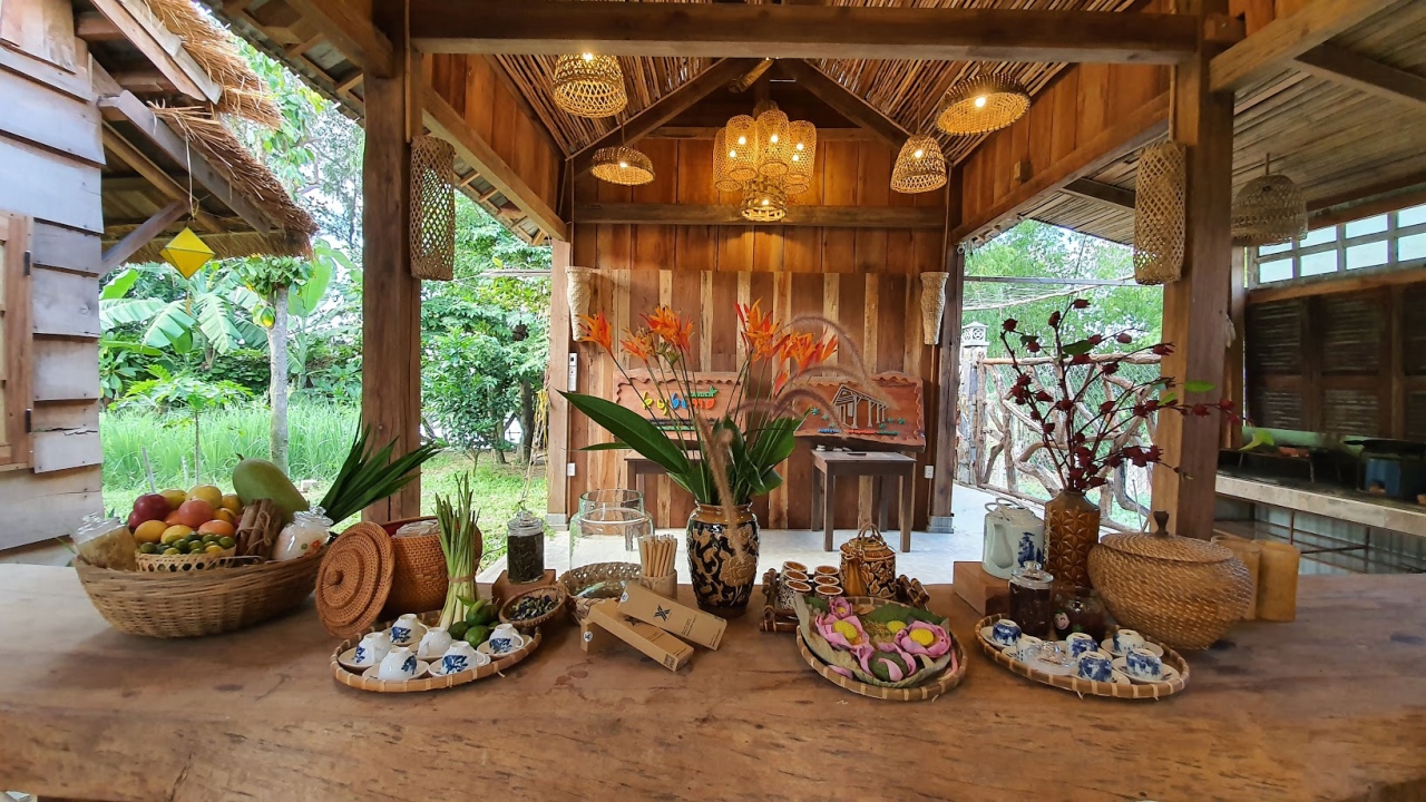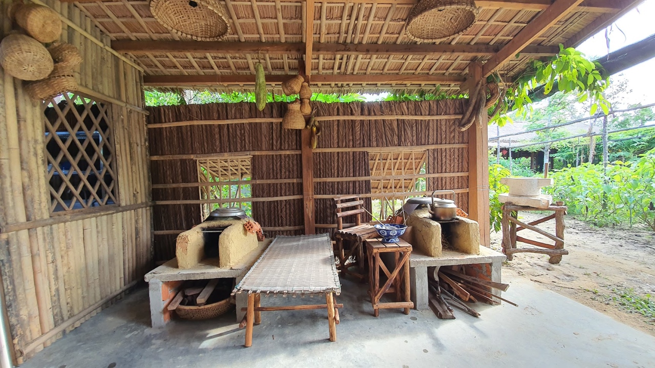 + Khu vực dạy nấu ăn gồm 2 nhà gỗ có sức chứa 40 khách.