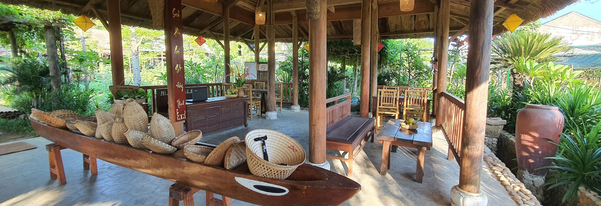 Đây là thiết kế mang đậm nét văn hóa đặc trưng vùng miền Trung nước ta. Ngôi nhà gỗ miền Trung trải qua bao thời gian vẫn giữ cho riêng mình thiết kế độc đáo. Kèm theo đó là tinh hoa kiến trúc văn hóa dân tộc được thổi hồn vào trong mỗi ngôi nhà. Thể hiện sự tinh tế của gia chủ, cũng là một sự kế thừa truyền thống. Là cách xây dựng nhà gỗ đẹp của cha ông ta bao đời truyền lại. Sau đây là một số hình ảnh về các khu nhà gỗ và không gian tại vườn: